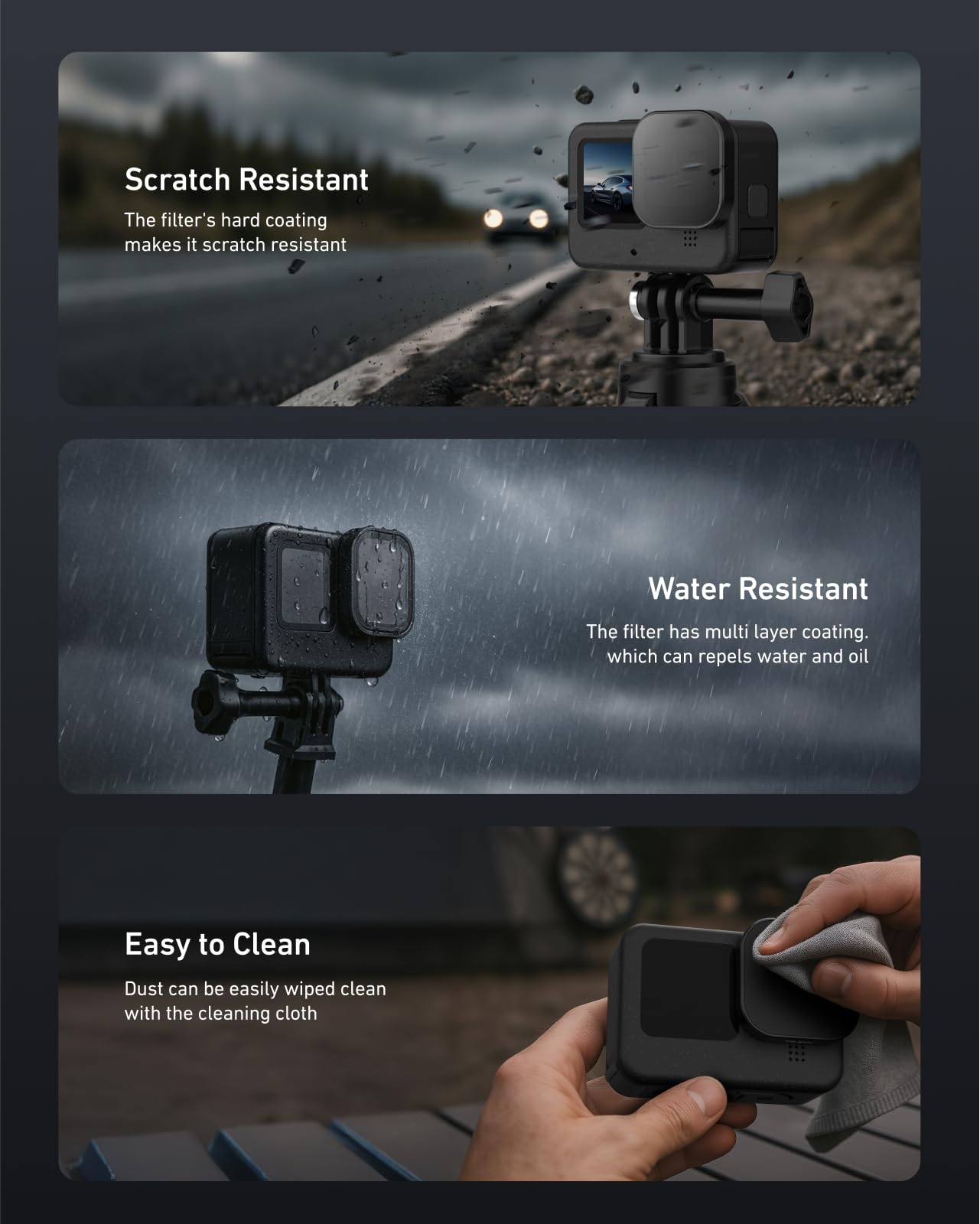 - 【GoPro Filter 3-piece set】 TELESIN ND8 + ND16 + ND32 lens filter set, specially designed for GoPro Hero 9/10/11/12 Black cameras.