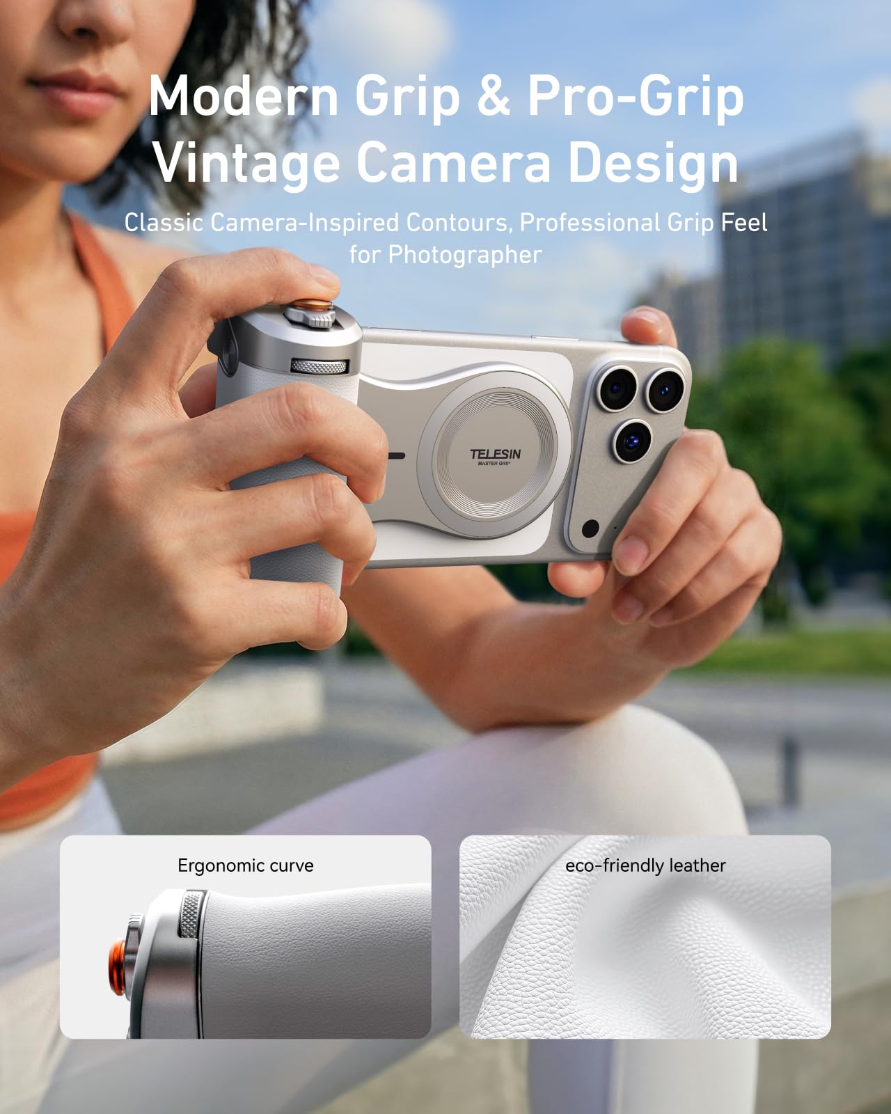 - 【🎬Transform Your Phone Into a Pro Camera — Feel Like a Real Photographer】Your phone camera deserves to feel like a real camera. Tired of shaky hands, tired taps, and missing the perfect shot? TELESIN Magnetic Imaging Master Grip turns ordinary mobile shooting into a smooth, satisfying, professional creative experience—so you can focus on capturing moments. Fit for those mobile photographers, Travel Bloggers & Vloggers & anyone who wants genuine DSLR-like control without carrying a bulky camera.