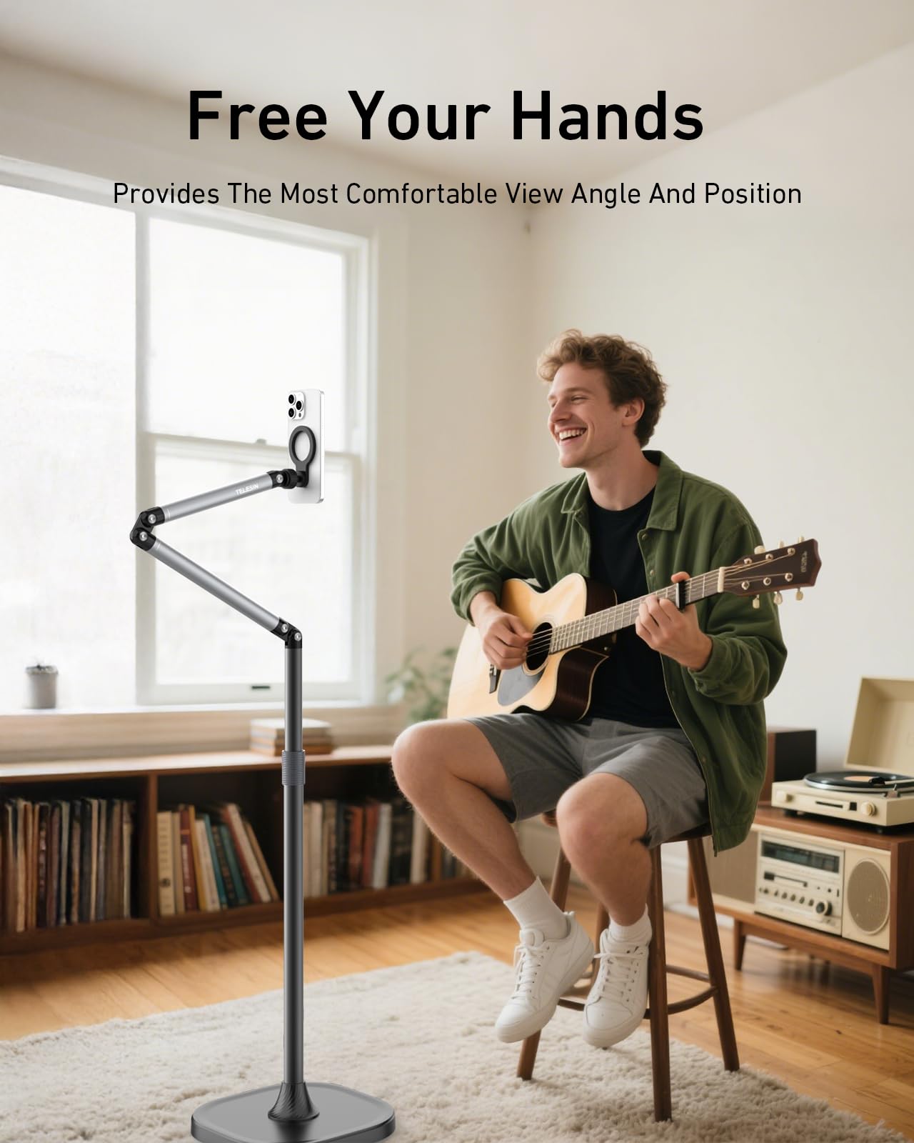 - Universal Rotation, Create to Your Heart's Content: The TELESIN° 2024 world premiere magnetic floor stand for recording and live-streaming is designed with a 360° bidirectional damped metal pivot, and the cantilever on the tablet floor stand can be freely adjusted to a variety of angles: vertical shot, horizontal shot, elevation shot, 360° panoramic shot, etc., easily become a good helper for your life, work shooting and recording.