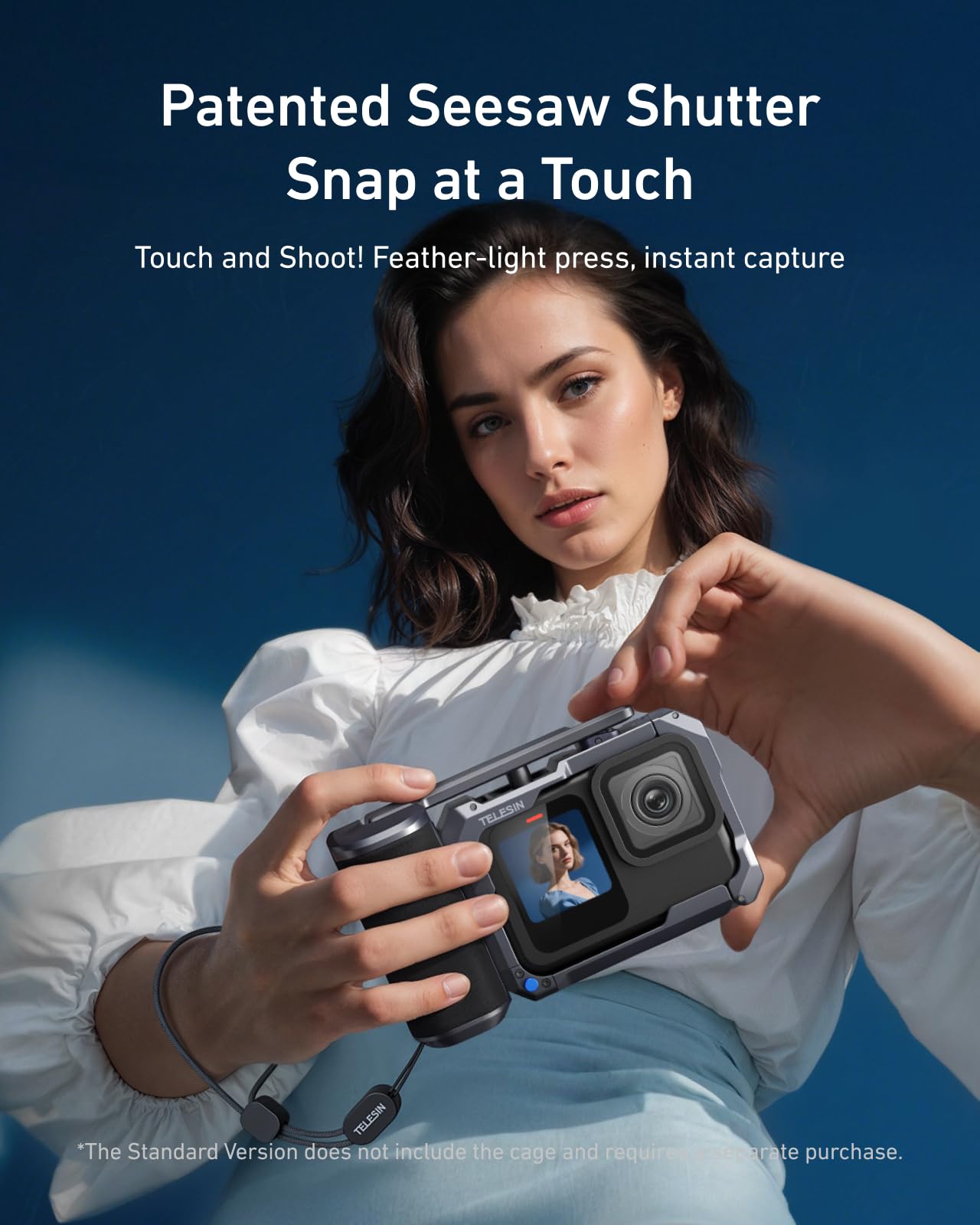 TELESIN Street Grip Kit for Hero 9-13 | with Metal Rabbit Cage | Camera Grip Holder with Seesaw Design | Aluminum Alloy Metal Shell | Backup TF Card Slot | Quick Battery Access | Vlog Grip Holder